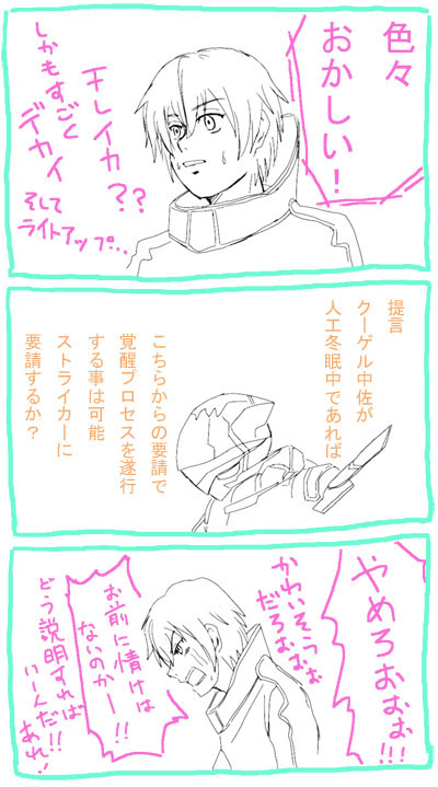 ストライカーさんレド君の地位を守る為頑張ります。支援システムがレド君を守らんとは何事か!とご立腹のようです。(私としては、ストライカーを地球に来る前までの状態に戻すか、データを残して初期化するかして欲しかったあああ!)