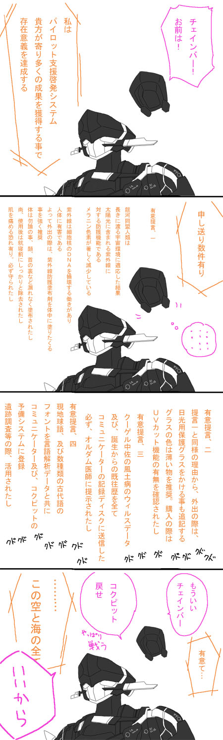 チェンバーは、ストライカーの事、パイロットが行動判断を誤るとシステムもまた思考破綻を起こす、プログラムの脆弱性が露呈した大変遺憾な実例とか嘆いていたけど。